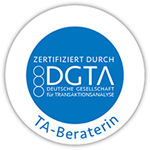 Zertifiziert als transaktionsanalytische Beraterin (DGTA), qualifiziert als Beraterin für Organisationsentwicklung, Coach und Trainerin, Scrum Master, Mitglied der Deutschen Gesellschaft für Transaktionsanalyse